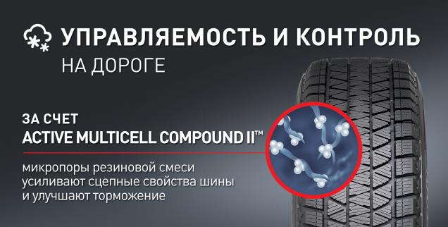 В модели DM-V3 применяется инновационная резиновая смесь Active Multicell Compound II ™, благодаря которой шины остаются эластичными даже при предельно низких температурах